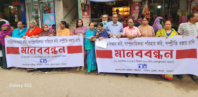 মঙ্গলবার বিকেল চারটায় শহরের আব্দুল হামিদ সড়কের পাবনা প্রেসক্লাবের সামনে বাংলাদেশ মহিলা পরিষদ পাবনা জেলা শাখার উদ্যোগে এই মানববন্ধন কর্মসূচি পালন কর হয়।