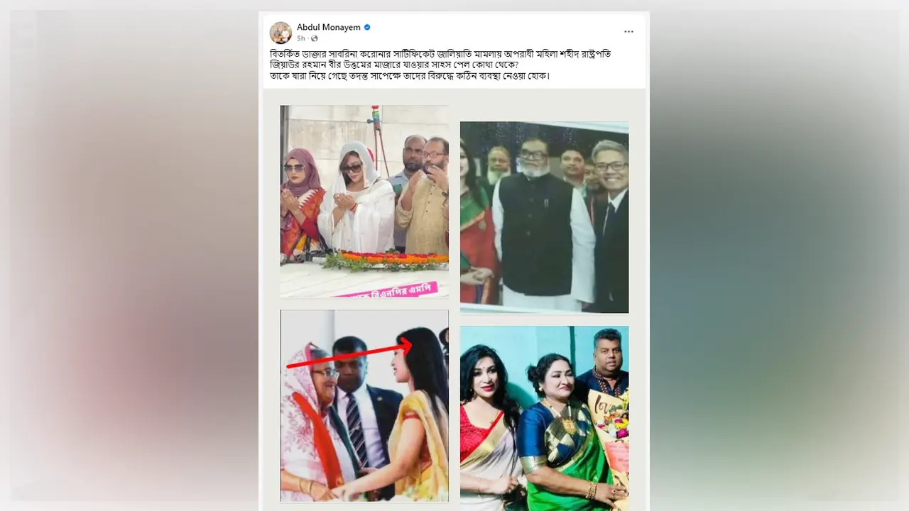ফেসবুক স্ট্যাটাসে তিনি লেখেন, ‘বিতর্কিত ডাক্তার সাবরিনা করোনার সার্টিফিকেট জালিয়াতি মামলায় অপরাধী মহিলা শহীদ রাষ্ট্রপতি জিয়াউর রহমান বীর উত্তমের মাজারে যাওয়ার সাহস পেল কোথা থেকে? তাকে যারা নিয়ে গেছে তদন্তসাপেক্ষে তাদের বিরুদ্ধে কঠিন ব্যবস্থা নেওয়া হোক।’