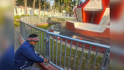 সাংবাদিকদের দাঁড়িয়ে থাকা দেখতে পেয়ে দূর থেকে ছুটে আসেন জেলা প্রশাসক কার্যালয়ের কর্মচারী ওয়াজেদ মিয়া ও আরদালী সুজন মিয়া। সাংবাদিকরা গেটের বাইরে পুস্পস্তবক অর্পণ করতে গেলে কিছুক্ষণ পর এক ঝোপা তালার চাবি নিয়ে হাজির হন একজন কর্মচারি।