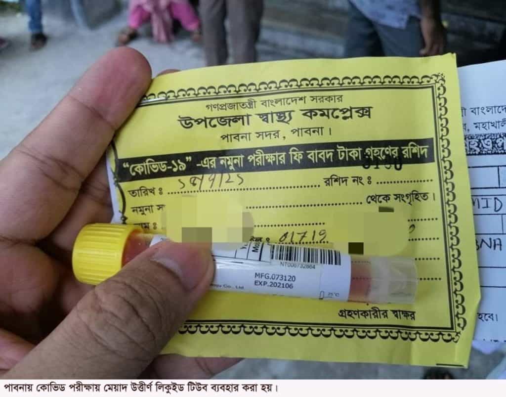 ভুক্তভোগী জনৈক ব্যক্তি জানান তার করোনা টেস্টের জন্য তাকে ২০২১০৬ মেয়াদের লিকুইড টিউবে নমুনা নেওয়া হয়। নমুনা নেওয়ার সময় তিনি মেয়াদ উত্তীর্ণ টিউব কেন ব্যবহার করা হচ্ছে তা জানতে চান। এ সময় দায়িত্বরত ব্যক্তিরা এব্যাপারে অফিসে কমপ্লেন করতে বলেন। উপায়ন্ত না পেয়ে তিনি সাংবাদিকদের স্মরণাপন্ন হন।