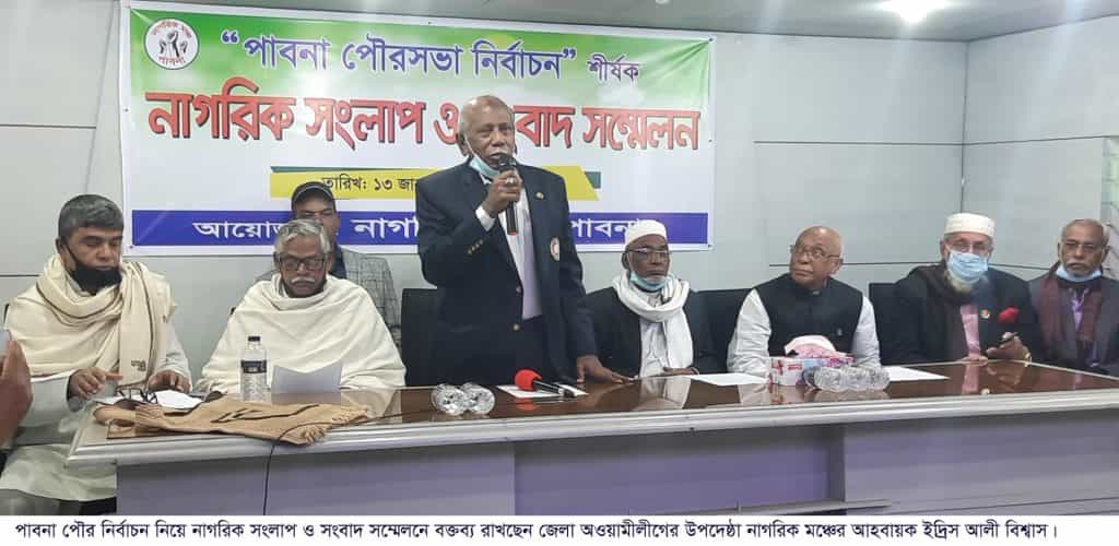 গতকাল বুধবার দুপুরে পাবনা প্রেসক্লাব মিলনায়তনে নাগরিক মঞ্চের ব্যানারে পাবনায় আসন্ন “পৌরসভা নির্বাচন শীর্ষক” নাগরিক সংলাপ ও সংবাদ সম্মেলন অনুষ্ঠিত হয়েছে। বিশিষ্ঠ ব্যবসায়ী ও পাবনা জেলা আ.লীগের উপদেষ্টা নাগরিক মঞ্চের আহবায়ক ইদ্রিস আলী বিশ^াসের সভাপতিত্বে অনুষ্ঠান পরিচালনা করেন সদস্য সচিব ও জেলা ওয়ার্কর্স পার্টির সভাপতি কমরেড জাকির হোসেন।