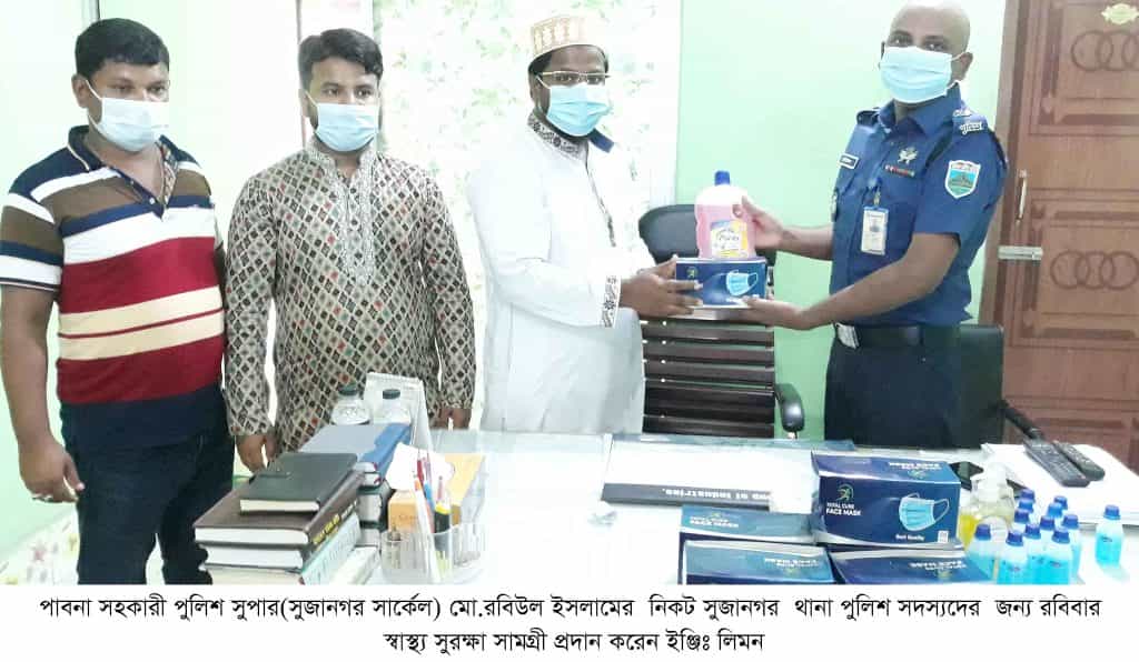 এম এ আলিম রিপনঃ করোনা ভাইরাসের প্রাদুর্ভাব বৃদ্ধি পাওয়ার সাথে সাথে যেন সুজানগর থানা পুলিশের তৎপরতা বৃদ্ধি পেয়েছে। তারা সরকারি নির্দেশনা অনুযায়ী জনসাধারণকে স্বাস্থ্যবিধি মানাতে রাত-দিন পরিশ্রম করে যাচ্ছে। করোনা ভাইরাস সংক্রমণে প্রতিরোধে জিবনের ঝুঁকি নিয়ে পুলিশ সেবামূলক এ সকল কাজের সাথে জড়িত থাকায় সুজানগর থানা পুলিশ সদস্যদের স্বাস্থ্য সুরক্ষার জন্য নাজিরগঞ্জ ইউনিয়নের বিশিষ্ট সমাজসেবক ও ইউপি চেয়ারম্যান পদপ্রার্থী ইঞ্জিনিয়ার নূর মোহাম্মদ লিমনের পক্ষ থেকে অক্সিমিটার-থার্মাল স্ক্যানার, মাস্ক,স্প্রে মেশিন,হ্যান্ড স্যানিটাইজার, হ্যান্ড ওয়াশ সহ অন্যান্য স্বাস্থ্য সুরক্ষা সামগ্রী প্রদান করা হয়েছে। রবিবার(১৮ জুলাই) পাবনা সহকারী পুলিশ সুপার (সুজানগর সার্কেল) মো.রবিউল ইসলাম ও থানা অফিসার ইনচার্জ (ওসি) মিজানুর রহমানের নিকট এ সকল স্বাস্থ্য সুরক্ষা সামগ্রী তুলে দেন নাজিরগঞ্জ ইউনিয়নের বিশিষ্ট সমাজসেবক ও ইউপি চেয়ারম্যান পদপ্রার্থী ইঞ্জিনিয়ার নূর মোহাম্মদ লিমন । এ সময় ওসি (তদন্ত) আব্দুল কুদ্দুস উপস্থিত ছিলেন।এছাড়া এ দিন মালিফা পুলিশ ফাঁড়ির সদস্যদের মাঝেও এ সকল সামগ্রী প্রদান করা হয়। স্বাস্থ্য সুরক্ষা সামগ্রী প্রদানকালে এ সময় মালিফা পুলিশ ফাঁড়ির ইনচার্জ আব্দুল মালেক উপস্থিত ছিলেন। সুজানগরের পুলিশ সদস্যদের জন্য স্বাস্থ্য সুরক্ষা সামগ্রী প্রদান করায় ইঞ্জিনিয়ার নূর মোহাম্মদ লিমনকে ধন্যবাদ জানান পাবনা সহকারী পুলিশ সুপার(সুজানগর সার্কেল) মো.রবিউল ইসলাম ও থানার ওসি মিজানুর রহমান । ইঞ্জিনিয়ার নূর মোহাম্মদ লিমন জানান, দেশের এই ক্রান্তিলগ্নে করোনাভাইরাস প্রতিরোধে পুলিশ সদস্যরা জীবনের ঝুঁকি নিয়ে কাজ করছেন । তাই তাদের দিকটাও খেয়াল করা খুব জরুরী। এ কারণেই সরকারের পাশাপাশি আমি ব্যক্তিগতভাবে তাদের পাশে দাঁড়িয়েছি। এছাড়া দেশে করোনাভাইরাসের প্রাদুর্ভাব দেখা দেওয়ার পর থেকেই নাজিরগঞ্জ ইউনিয়নের সাধারণ মানুষদের মাঝে সচেতনতা সৃষ্টি করতে বিভিন্ন কার্যক্রম পরিচালনা করার পাশাপাশি ইউনিয়নের করোনায় কর্মহীন অসহায় মানুষদের মাঝে আমি আমার সাধ্যমত খাদ্য সামগ্রী বিতরণ সহ অন্যান্য সহযোগিতা প্রদান করে আসছি বলেও জানান তিনি।উল্লেখ্য এর আগে করোনার প্রথম ধাপে সুজানগর হাসপাতালে ৫০ হাজার টাকার আর্থিক সহযোগিতা প্রদান করেন নাজিরগঞ্জ ইউনিয়নের বিশিষ্ট সমাজসেবক ও ইউপি চেয়ারম্যান পদপ্রার্থী ইঞ্জিনিয়ার নূর মোহাম্মদ লিমন।