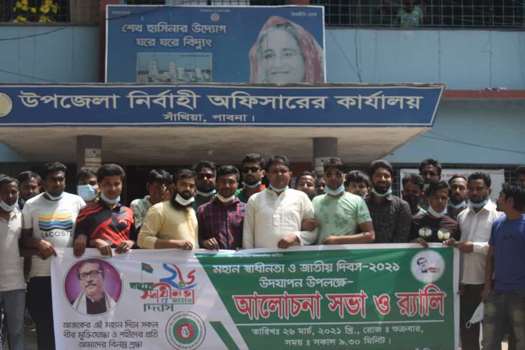 বিসিপিআরটিএ বেড়া-সাঁথিয়া শাখার সভাপতি ফয়সাল ওয়াহেদ ইমনের সভাপতিত্বে ও সাধারণ সম্পাদক রফিকুল ইসলাম ছানের পরিচালনার ২৬ শে মার্চ(শুক্রবার) সকালে বিসিপিআরটিএ বেড়া-সাঁথিয়ার প্রধান কার্যালয় থেকে একটি র্যালি বেড় করে বেড়া উপজেলার প্রধান প্রধান সড়ক প্রদক্ষিন করে সাঁথিয়া উপজেলা প্রেস ক্লাবের সামনে গিয়ে সমাবেত হয়।পরে সাঁথিয়া উপজেলার প্রধান প্রধান সড়ক প্রদক্ষিন করে সাঁথিয়া আওয়ামী লীগ অফিসে গিয়ে শেষ হয়।