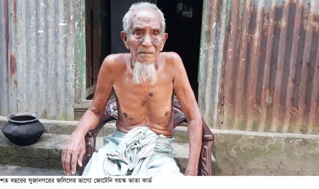 এম এ আলিম রিপন ঃ আব্দুল জলিল বিশ্বাস। শত বছর পার করেছেন অনেক আগেই। এখন ঠিকমত চলতেও পারেন না। লাঠি ভর দিয়েই তাঁকে হাঁটতে হয়। অনেক চেষ্টা করেছেন একটি বয়স্ক ভাতার কার্ড পেতে। ্এক হাজার টাকা ইউপি সদস্যকে দিলেও হতদরিদ্র আব্দুল জলিল বিশ্বাসের ভাগ্যে জোটেনি বয়স্ক ভাতার সেই কার্ড। জলিল বিশ্বাসের এখন একটিই প্রশ্ন, আর কত বয়স হলে তিনি বয়স্ক ভাতার সেই কার্ড পাবেন। সোমবার(০২ নভেম্বর) এলাকার কয়েকজন বাসিন্দার সঙ্গে কথা বলে জানা গেছে, আব্দুল জলিল বিশ্বাসের বাড়ী সুজানগর উপজেলার নাজিরগঞ্জ ইউনিয়নের ৭ নং ওয়ার্ডের বরখাপুর গ্রামে। এ গ্রামের মৃত তছির বিশ্বাসের সন্তান তিনি। জলিল বিম্বাসের রয়েছে ৬ ছেলে ও ৪ মেয়ে। মেয়েদের বিয়ে দিয়েছেন অনেক আগেই। আর ছেলেদের মধ্যে একটি ছেলে প্রতিবন্ধী এবং অপর ছেলেরাও তার পিতাকে ভরণপোষণ করেন না। জাতীয় পরিচয়পত্রে জন্মসাল(১৯৪৬) অনুযায়ী জলিল বিশ্বাসের বর্তমান বয়স ৭৪ বছর। প্রকৃতপক্ষে তার বয়স হবে ১০৬ বছর বলে দাবি করেন জলিল বিশ্বাস। বয়সের ভারে সে নুয়ে গেছে। শরীরের চামড়া গুছিয়ে গেছে।