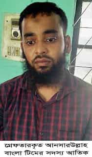 - সাঁথিয়া (পাবনা) প্রতিনিধিঃ পাবনায় সাঁথিয়ায় আতিক হোসেন রতন বীর মোজাহিদ (২৪) নামে আনসারুল্লাহ বাংলা টিমের(এটেবি)এক সদস্যকে গ্রেফতার করেছে এন্টি টেররিজম ইউনিটের(এটিইউ) একটি চৌকস দল। আতিক উপজেলার নন্দনপুর ইউনিয়নের খয়েরবাড়িয়া গ্রামের আব্দুর রহমান ফকিরের ছেলে। বাংলাদেশ পুলিশ এন্টি টেররিজমর ইউনিটের এক প্রেস রিলিজে জানা যায়, ‘গাজওয়াতুল হিন্দ’ প্রতিষ্ঠার লক্ষ্যে আতিক দীর্ঘদিন যাবৎ অনলাইন প্রচারনাসহ রাষ্ট্রবিরোধী ষড়যন্ত্র করে সশস্ত্র সংগ্রামের মাধ্যমে বাংলাদেশে খিলাফত প্রতিষ্ঠা করার উদ্দেশ্যে অনলাইনে বিভিন্ন কার্যক্রম পরিচালনা করে আসছিল। গোপন সংবাদের ভিত্তিতে মঙ্গলবার সন্ধ্যায় অভিযান চালিয়ে তার নিজ গ্রাম উপজেলার খয়েরবাড়িয়া থেকে এন্টিটেররিজম ইউনিটের চৌকস দল তাকে গ্রেফতার করে। এ সময় তার নিকট থেকে একটি মোবাইল সেট ও ৬টি উগ্রবাদী বই জব্দ করা হয়। সাঁথিয়া থানার অফিসার ইনচার্জ(ওসি) আসাদুজ্জামান জানান, আতিকের বিরুদ্ধে সাঁথিয়া থানায় মামলা হয়েছে। বুধবার তাকে আদালতে চালান দেয় হয়েছে।##