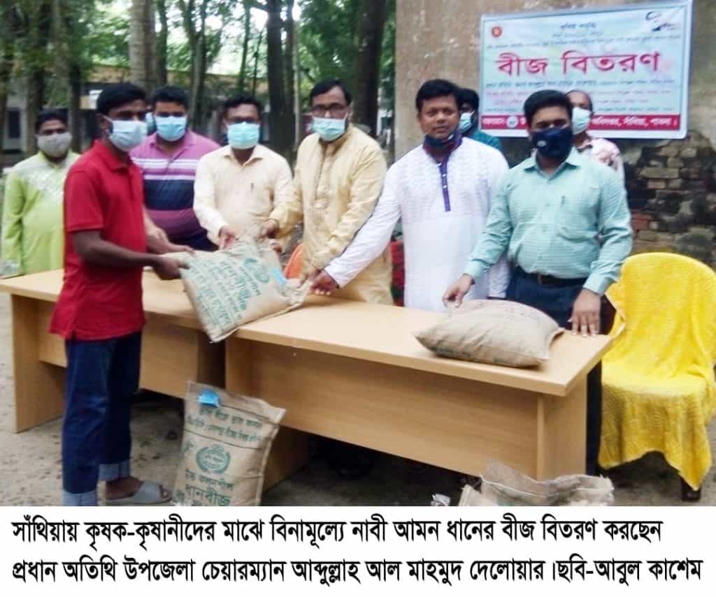 সাঁথিয়া(পাবনা)প্রতিনিধি, পাবনার সাঁথিয়ায় উপজেলা কৃষি সম্প্রসারণ অধিদপ্তরের উদ্যোগে কৃষি প্রনোদনা কর্মসূচীর আওতায় ক্ষুদ্র ও প্রান্তিক চাষীদের মাঝে বিনামূল্যে নাবী রোপা আমন ধানের বীজ বিতরণের আয়োজন করা হয়।