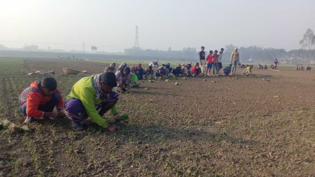 ইতো মধ্যে উপজেলার ঐতিহ্যবাহী ঘুঘুদহ বিলসহ বিভিন্ন বিল পারে কৃষকদের ব্যস্ত সময় কাটছে পেঁয়াজ রোপনে। কৃষকরা কুয়াশা ও তীব্র শীত উপেক্ষা করে শ্রমিক নিয়ে মাঠে উপস্থিত হচ্ছে। তারা ইঞ্জিল চালিত মেশিন দ্বারা জমি চাষ করে সঠিক পরিমাপে সার ছিটিয়ে রোপ কাজ শুরু করছে। পরিবারের অন্য সদস্যরাও পেঁয়াজ মৌসুমে বসে নেই। মহিলারা ভোর রাত থেকেই ব্যস্ত হয়ে পড়েন শ্রমিকদের খাবার রান্নার কাজে। পরিবারের ছোট সন্তানটিও যেন বসে নেই করোনায় স্কুল বন্ধ থাকায় বাবার কাজের সাথে সেও যেন একজন পেশাদার কৃষক।